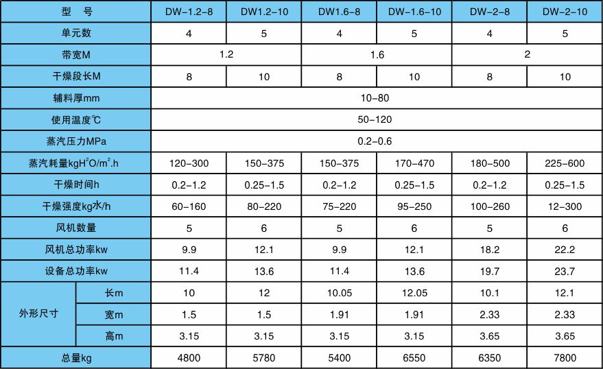 DW系列帶式干燥機是成批生產(chǎn)用的連續(xù)式干燥設(shè)備,用于透氣性較好的片狀、條狀、顆料狀物料的干燥,對于脫水蔬菜,中藥飲片等類含水率高、而物料溫度不允許高的物料尤為合適;該系列干燥機具有干燥速率快、蒸發(fā)強度高、產(chǎn)品質(zhì)量好的優(yōu)點。對脫水濾餅類的膏狀物料,需經(jīng)造料或制成棒狀后亦可干燥。
