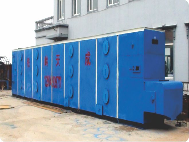 用于脫水蔬菜,一般使用三臺設(shè)備串聯(lián)使用,形成初干段、中間段及終干段。在初干段中,由于物料含水量高,透氣性差,故采用小的輔厚度,較快的運行速度及較高的干燥溫度。對物料溫度不允許超過60℃的料,初干段中,干燥氣體溫度可高達120℃以上。終干段內(nèi)物料停留時間是初干段的36倍,輔料厚度是初干段的2-4倍。對于物料溫度不超過60℃的要求,可采用80℃左右的干燥氣體。采用多段組合能更好地發(fā)揮帶式干燥機的性能,且干燥更均勻。
