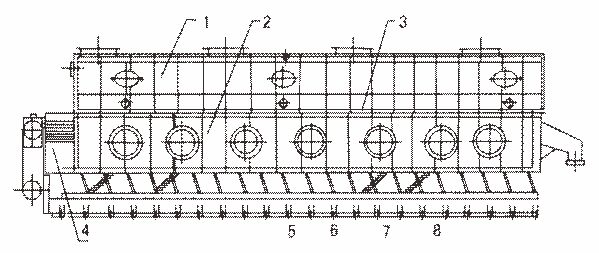 1、上腔 2、風箱 3、流化床板 4、箱式激振器